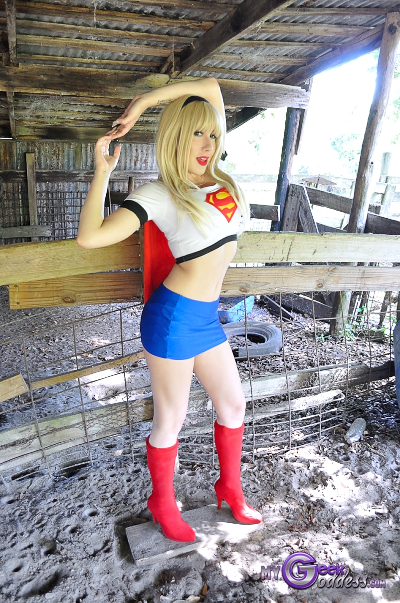 Always love your superhero sets Solara, and this one cranks it up to the Nth degree. You have a Gorgeous Smile, and that really show’s with how much you bring out with the character that your sweet and sexy at the exact same time. The Red definitely highlight your lovely legs, as well as the final shot which was a fun tease to end it on. It’s an added bonus that you used a farm setting for the shoot, adds a lot of ambiance to the shoot. My favorites are 36, 83, and 91. You’ll always be my Supergirl Solara. 🙂